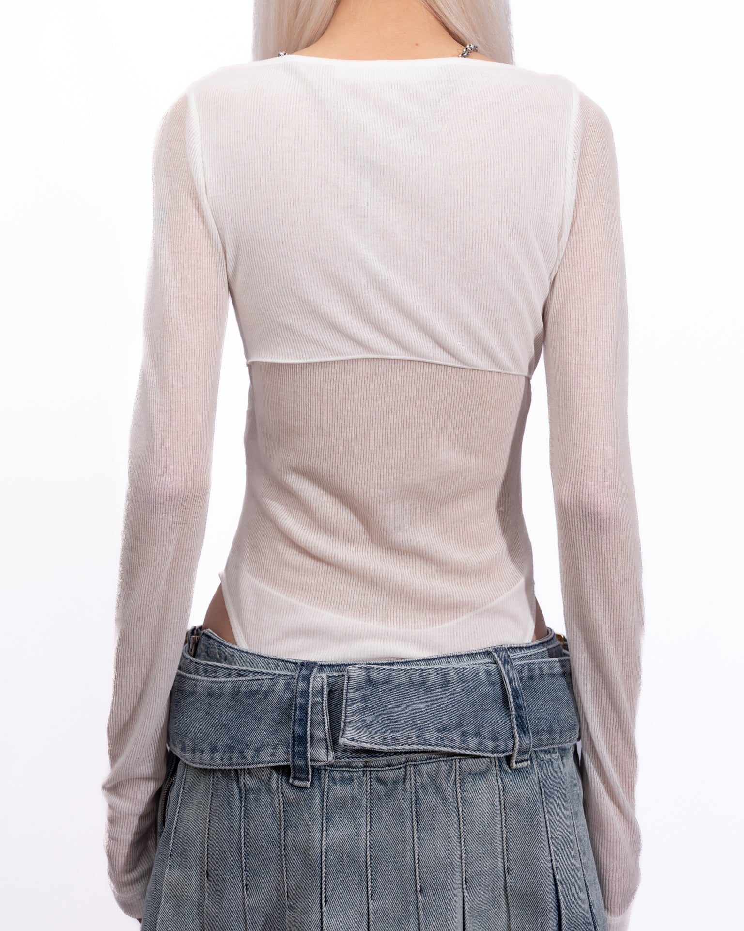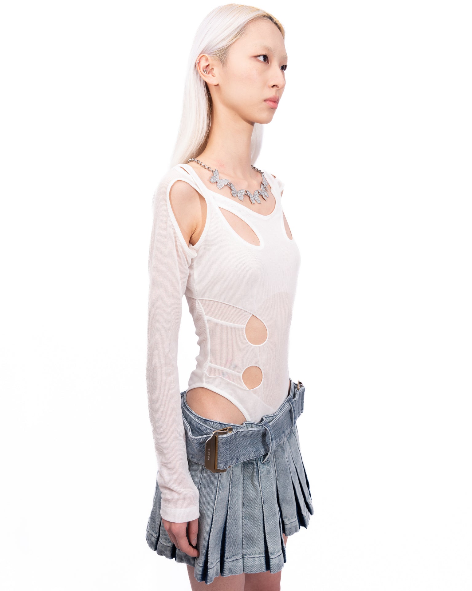 Semi-sheer rib knit cotton- and nylon-blend bodysuit. Cutouts throughout.
