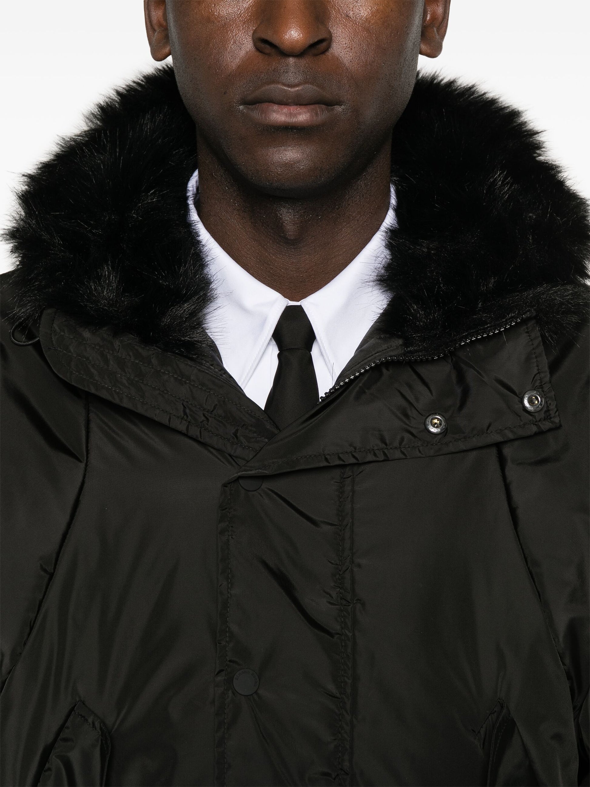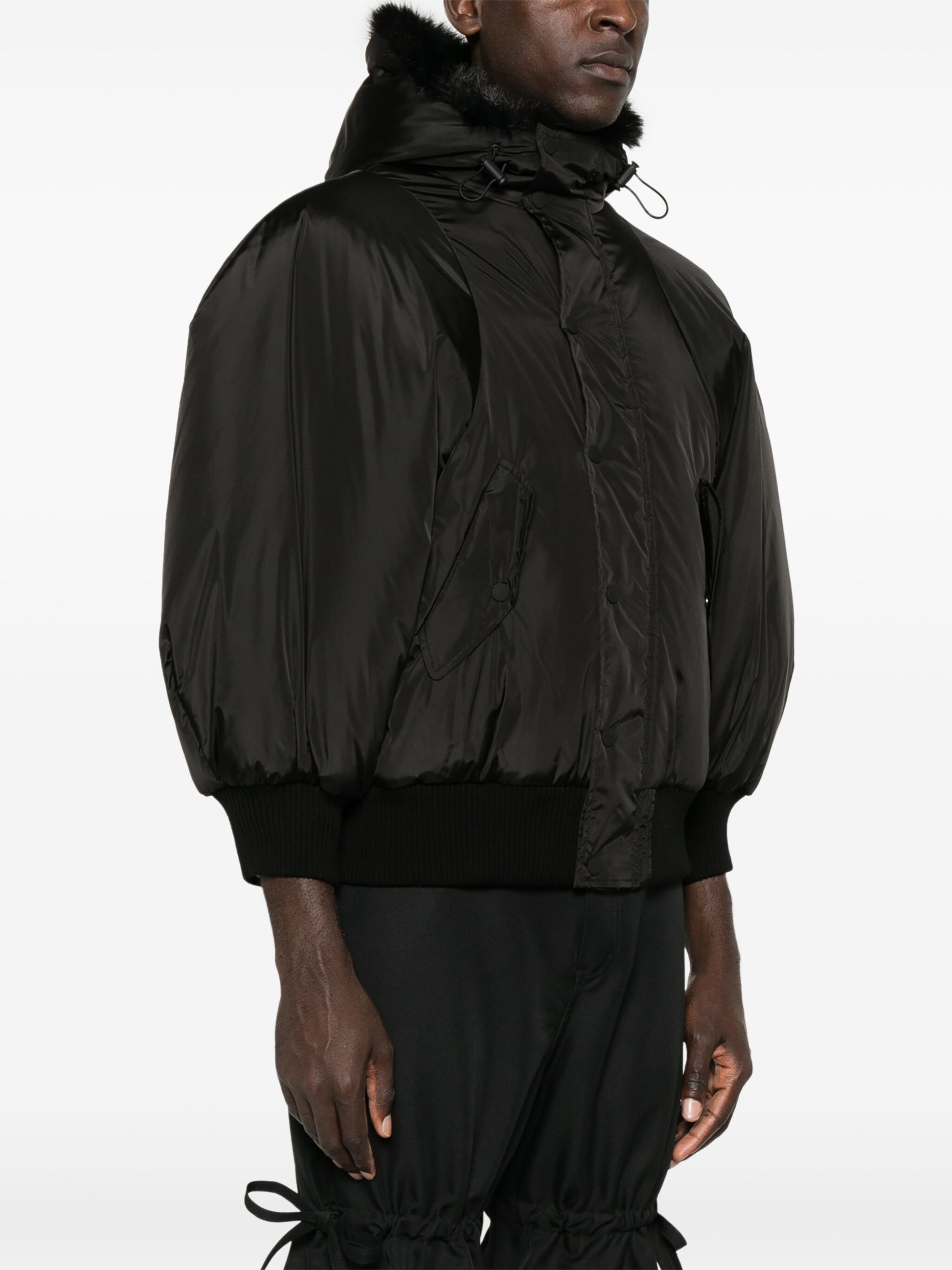 - faux fur-trimmed hood